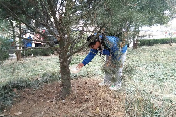 每年的3月12日是人们公认的植树节。今年也不会例外,在植树节这一天里,总是能在校园里看到各种各样的植树和爱树的感人画面。动物药学1401班的同学们是一个非常爱护树木的集体,所以他们决定在这样一个意义非凡的节日里,为身边的树木做一些力所能及的事情。