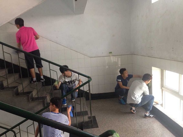 5月15日,动物医学1404班的同学们参加了义工活动,本次义工内容为帮助清洁工人打扫宿舍楼内的卫生,义工地点为东苑18号和20号宿舍楼,全班所有有义工证的同学参加。