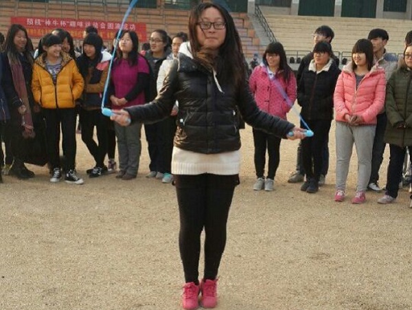动科1402班同学淡定从容地进行跳绳比赛,不争不抢,将乐趣放在第一位,本着开心就好的原则快乐比赛。