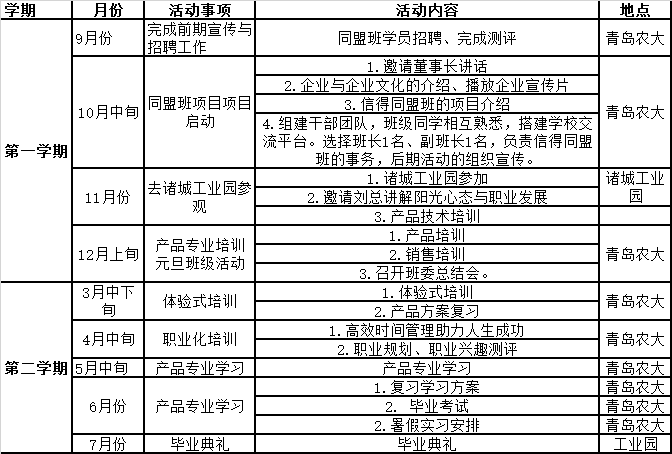 备注:微信课程同步进行,一个月邀请一名技术老师、大区经理、人力资源部同事讲授产品、销售、管理知识。除此之外公司还会拿出一部分的费用用于班级活动比如圣诞节、篮球赛等。