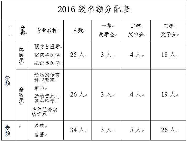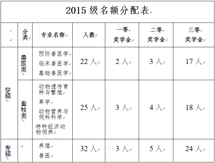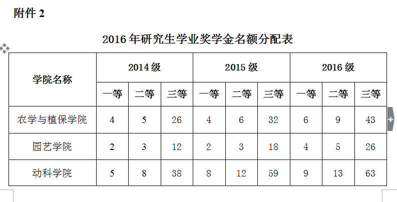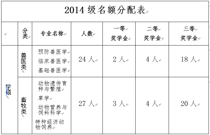 第三条 研究生学业奖学金的设置标准与名额分配比例依据当年度下发的研究生学业奖学金评选通知要求设置,分畜牧学和兽医学按学术型硕士和专业型硕士依据比例单独推荐评选。
