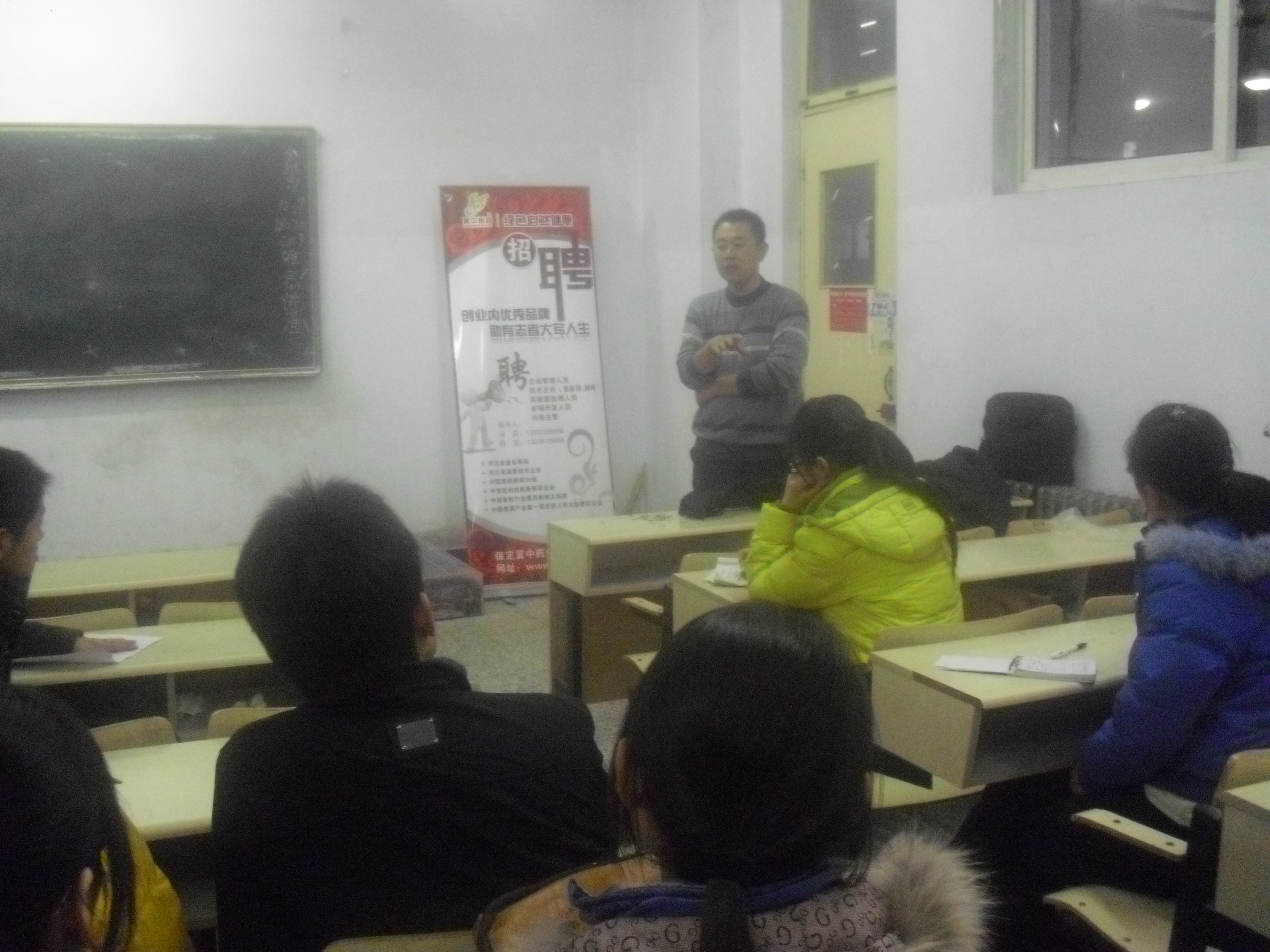 为了给同学们创造更好的就业选择空间,2010年12月9日,动物科技学院在A102教室举办来了主题为“创业内优秀品牌,助有志者大写人生"的招聘恰谈会。冀中药业集团主管山东区的郭总理、公司职员曹先生与动科学院的同学召开招聘洽谈会。