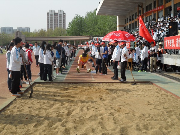 4月24日上午八点整,青岛农业大学春季运动会的跳远比赛在五环体育场举行。动物科技学院的张雪花和廖端辰同学分别荣获第一、第二名的佳绩。