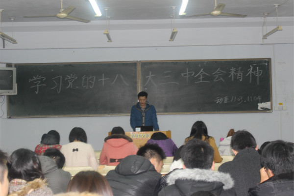动科学院学生党员按照班级、教室和组别的人员分配,分别到各自负责的教室进行中央文件的宣读和讲解。从党的群众路线教育实践活动、党的基本知识、党的十八大报告和党章基本知识、习近平总书记十八届三中全会重要讲话精神等八个方面对大家进行了政治教育。在学习中央文件期间,每个教室分配两到三名学生党员,一名主讲或两名副讲。主讲学生党员以其风趣幽默又严谨的话语使广大学生党员深刻理解群众路线的本质和内涵;副讲学生党员及时监督并帮助同学们做好政治笔记。同学们认真听讲,积极配合学生党员的工作。
