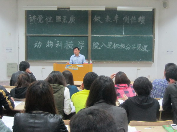 4月23日,动物科技学院第十期入党积极分子第二阶段培训会在教学楼D区举行,学院党总支副书记、副院长周顺,正科级辅导员王海霞及入党积极分子参加会议。
