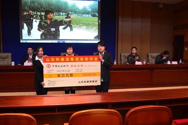 会议伊始,和康源人力资源部徐冬蕾宣读获得和康源奖助学金同学的名单,并由曹经理向获奖同学代表颁发奖品。随后,白连万讲话,对和康源公司表示热烈的欢迎和衷心的感谢,并向同学们对和康源公司和学院同和康源集团的友好合作关系进行了简要的介绍,希望同学们能够认真听取本次报告,认真聆听来自企业一线的专家对企业用人的看法。在此之后,曹月华经理针对公司的发展历史、发展现状、企业文化以及公司的团队进行了详细的介绍。最后,学院08级动科专业学生孙家奇向同学们阐述了自己对学校的想念和自己的发展状况,并希望学院能够有更多优秀的学生能够加入和康源。
