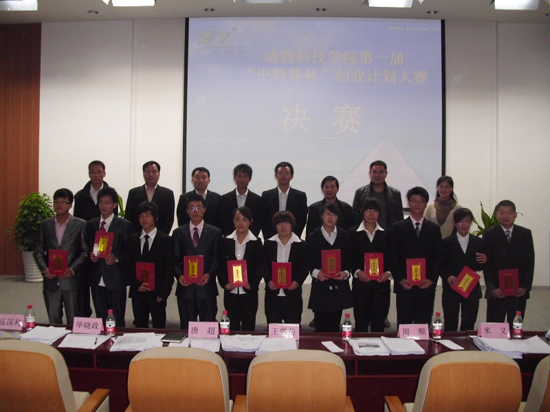 10月31日,由动物科技学院和北京中特养生物技术研究有限公司联合举办的“中特养杯”创业计划大赛总决赛在校会议室2号报告厅拉开帷幕。中特养生物技术有限公司经理唐超、米义,校党委学工部副部长王效仿,校审计科毕晓政老师,校团委张兴华老师,动科学院党总支副书记、副院长周顺,团总支书记白连万,正科级辅导员张国立、梁伟,辅导员许颖出席大赛并担任评委。