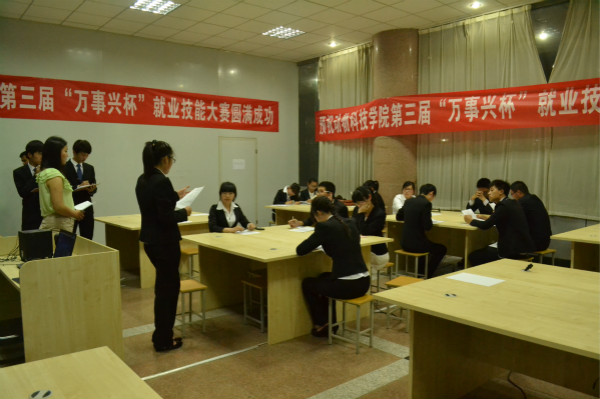 为响应第十届“大学生科技文化艺术节”的号召,深入学习贯彻党的十八大、十八届三中全会和团的十七大精神,扎实推进“书香校园”文化建设工程,全面提高学生自身的综合素质,丰富大学生课余文化生活。 5月18日,动物科技学院学生会校企合作部于文经楼进行“万事兴杯”就业技能大赛复赛。