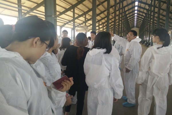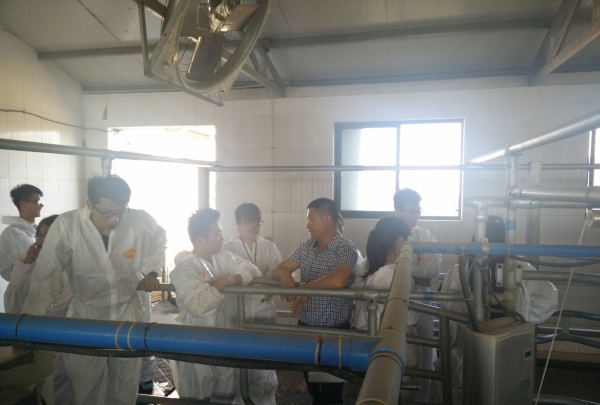 在各个区域参观时,同学们对于奶牛的饲养和设备的使用产生了很多疑问,而谭总和张厂长运用自己这么多年来的经验和知识完美的解决这些疑问,期中一些问题的细节更是同学们理论课中完全学不到的,例如在牛产奶期时,产奶高峰期和低谷期喂养的饲料也是有区别的。究其原因是让牛的产奶量和饲料比例可以达到最大化。不仅如此,现代化的挤奶车间也让同学们大开眼界,惊叹不已。