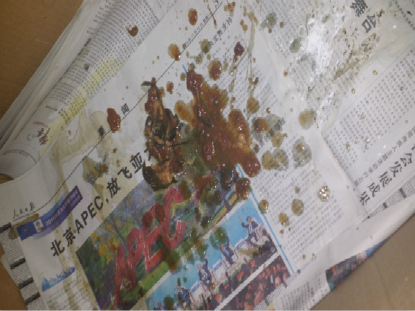 张教授立刻对乌雕进行嗉囊的清理。通过呕吐物判断,乌雕曾经进食了幼鸟、鱼等食物,经确认未曾人工饲喂,初步分析该乌雕可能是误食被投毒动物造成的中毒。在清理过程中杨副教授还被受到惊吓的乌雕啄伤,简单处理后杨副教授又投入到对乌雕的救助中来。