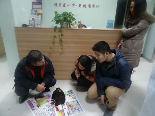 12月4日下午四点左右,动物科技学院孙娟教授接到电话,一只疑似中毒的国家二级野生保护动物乌雕急需救治。孙娟教授立即联系了学院禽病治疗专家张廷荣教授及杨海燕副教授,到青岛农业大学教学医院蓝十字宠物医院对病危的乌雕进行救治。一并前往的还有动物科技学院研究生赵怡然、动物医学专业辛宇航及张云娇同学。
