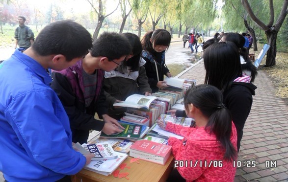 为顺利举办此次图书漂流活动,动科学院学生积极筹备,共收集各类书籍200余册,包括经典名著、励志小说、杂志文摘等,其中也不乏有很多外语杂志、四六级考试用书以及各类外文工具书,极大的满足了广大学生对知识的需求。活动现场吸引了大批驻足观看、预定图书的同学,现场共有86本图书交易成功,其中很多图书都是我院同学免费赠送,极大的加深了同学们之间的友谊,给寒意微袭的校园带来了些许温暖,也为我校莘莘学子们送上了浓浓祝福。