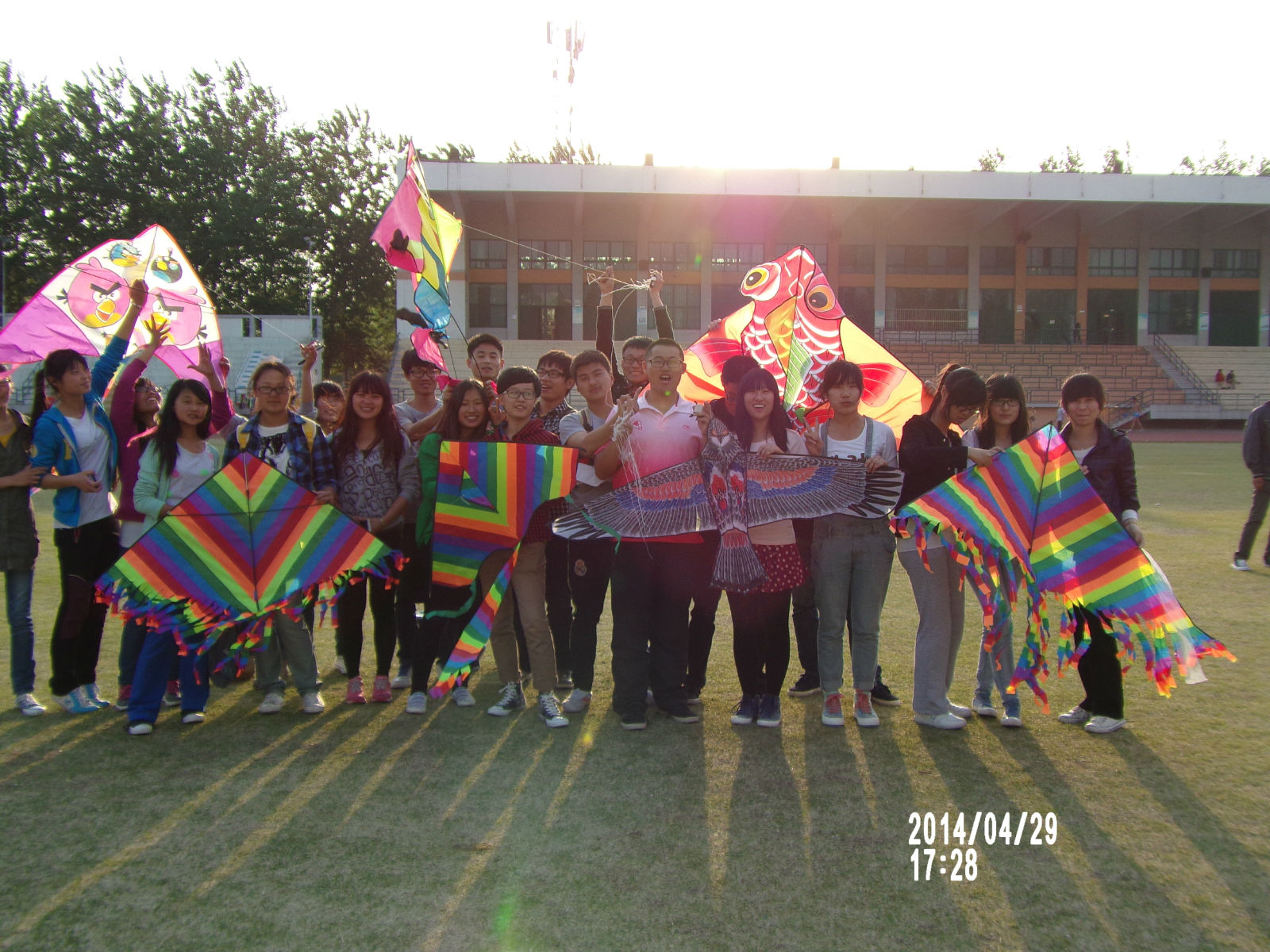 下午5时,同学们带着各式各样风筝来到五环运动场。他们三三两两一组,同组的小伙伴有的撑起心爱的风筝,有的急忙系上牵引风筝的细线,或有的拿出自制的感恩卡片贴在风筝上。一切准备就绪之后,空中不断有色彩斑斓、形式各样的风筝出现,引来了许多路人驻足欣赏,欢笑声也充满了整个操场。最后,心理发展部成员与参加此次活动的同学一起合影留念,同时也标志着此次活动圆满落幕。
