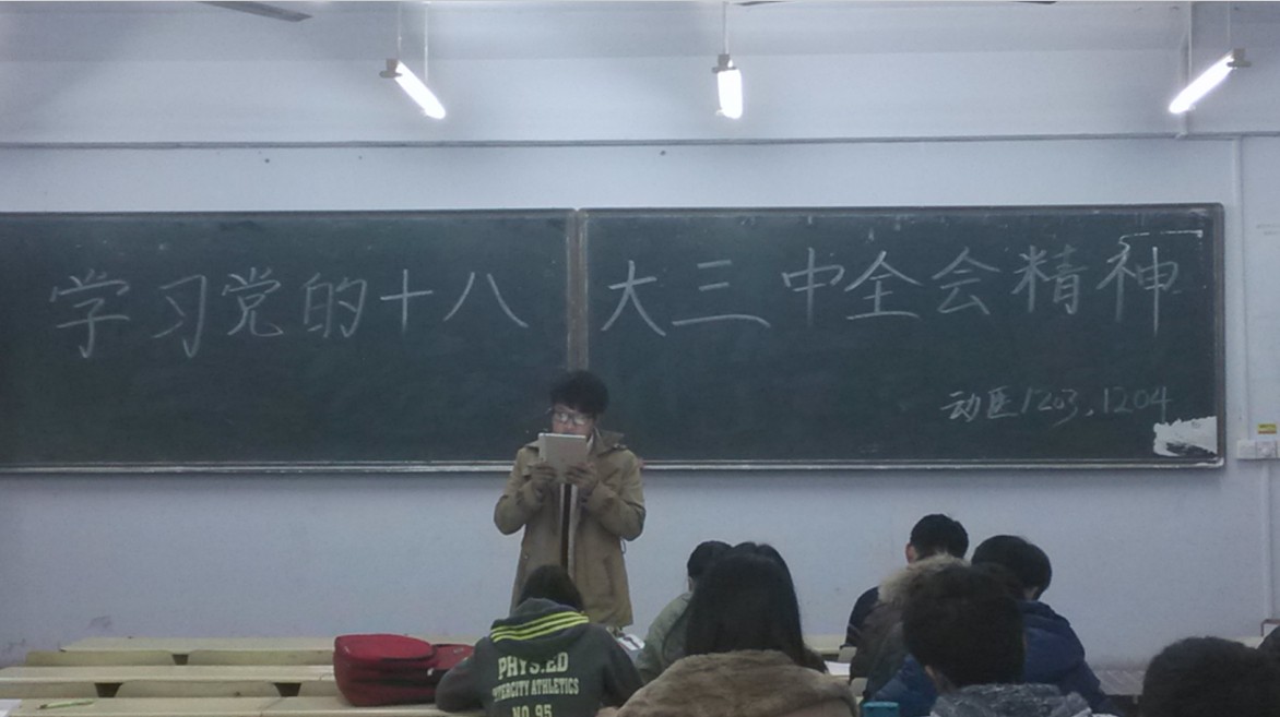 2013年12月8日晚,动物科技学院组织11级学生党员带领全体学生学习十八届三中全会。本次学习意在加强学生的思想政治建设,激发学生的爱党热情。