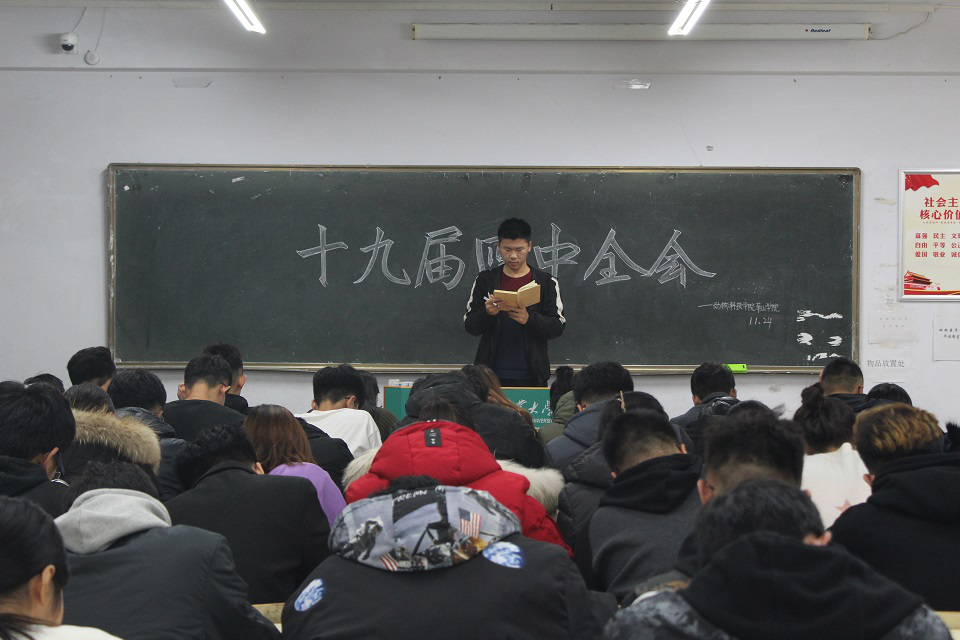 学院各团支部组织团员青年认真学习了党的十九大四中全会发布的《中共中央关于坚持和完善中国特色社会主义制度 推进国家治理体系和治理能力现代化若干重大问题的决定》具体内容。