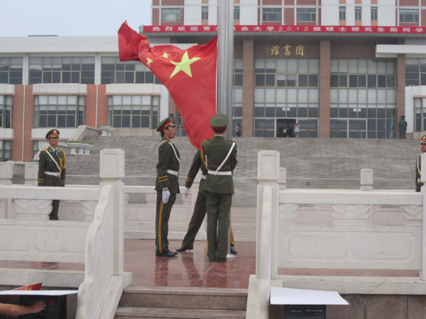 升旗仪式上,首先,梁书记指出,动科学院在过去的一年中各项工作均稳步发展,取得了一定的成绩,学院不断发展壮大,整体实力不断增强。其次,梁书记要求同学们,在求学的道路上,要明确自己的奋斗目标,把握机遇,珍惜时间,勤奋好学,自觉加强思想道德修养,做一个品德高尚的人,把诚信明理、团结友善、和谐宽容作为自己新学期的基本准则,不断提升自身水平,充分挖掘自身的潜质,使自己今后能更好的适应社会的发展,在发展中实现自身价值,为学院增光添彩。最后,梁书记强调,在迎新期间,希望同学们能够严格要求自己,以实际行动展现学校和学院的良好形象,为2012级新生做好表率,确保迎新工作顺利进行。