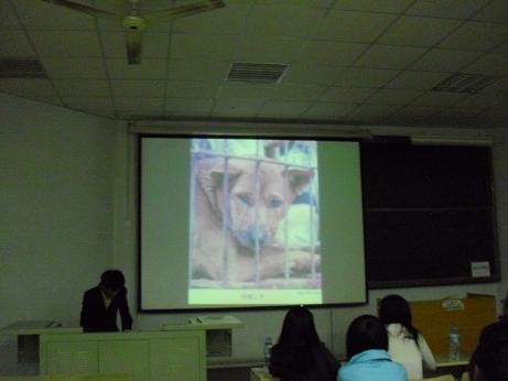 作品展播后,我院为现场观众播放了亚洲动物基金的“美味?或佳肴?”的公益宣传短片。通过短片,让同学们认识到狗是人类的好朋友,我们不应该食用他们,而应与他们建立友善的关系。最后,本次活动在同学们的掌声中圆满落幕。