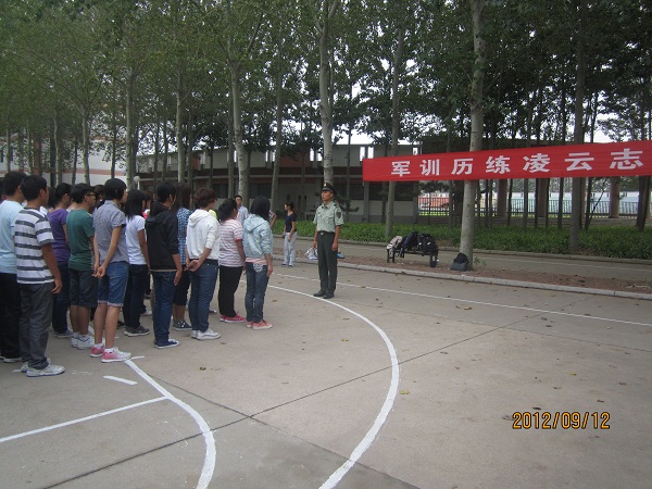 与此同时,学院12级新生以及各班班主任助理早已在动科楼前准备就绪,列队欢迎教官的到来。教官们排着整齐的队伍,迈着整齐的步伐走到同学们面前。