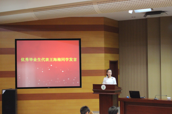首先,潘庆杰说到,今天的毕业讲话是马科学毕业生们最后一堂课,动物科技学院的马科学专业是全国唯一一个马科学的本科专业,希望大家可以永久记得在大学学会的知识。随后,毕业生王海梅上台演讲,她向大家展示了她在宁波马场的实习经历。她对马有一种单纯的热爱,当初就是因为热爱马,她才从其他专业转到了马业科学专业。她说和马在一起的日子是很单纯的,在马场的日子虽然忙碌但是又很幸福,同时在实习期间,她学到了很多课本上学不到的知识,并且将课本上的知识学以致用。她还为同学们播放了一组关于宁波马场的幻灯片,让大家对于马场和马术俱乐部有了更深入的了解。最后,杨同毅告诫各位学子,企业将会为他们提供更多的机会,知识只有在工作中得到运用,才能体现它们的价值,希望同学们能够在自己的专业领域获得更好的发展。