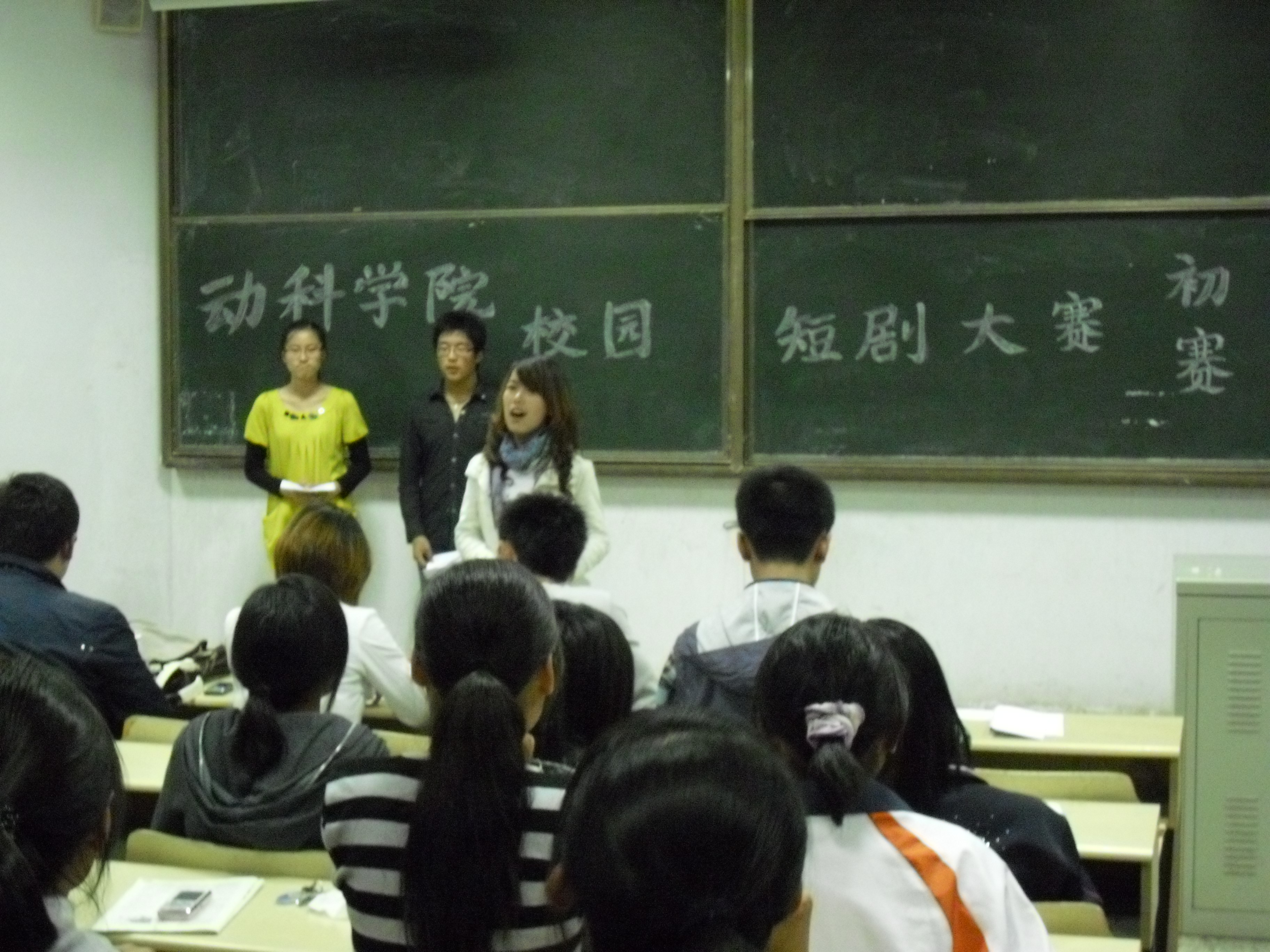 为彰显大学生的色彩生活,丰富我们的课外活动,10月16日,动物科技学院在教学区B区举行校园短剧大赛初赛。学生会主席及各部长担任评委。09、10级以各班级为单位组成了26支参赛队伍。