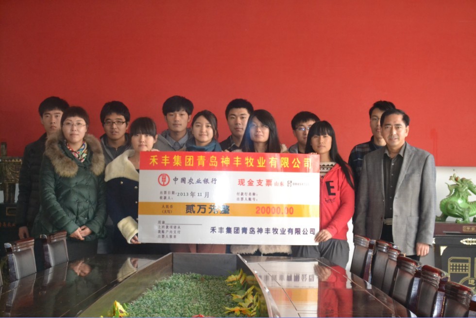 11月23日上午11:30,由动物科技学院举办的禾丰集团青岛神丰牧业有限公司教育基金颁发活动在二楼会议室举行。禾丰集团人力资源部经理孔丽丽,动物科技学院分党委书记潘庆杰,学工办辅导员王洋出席了本次活动。动物科技学院学生积极参加。仪式由王洋老师主持。