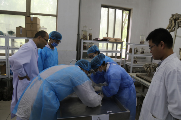 大赛将赛前培训结合《家畜外科学》实习联合开展,极大地调动了学生参与教学实习的积极性。初赛有240名学生参加,经过教学实习考核,筛选出17个团队,68名同学参加决赛。经过精心组织与培训,决赛于6月5日在动物科技学院C区118 实验室开展。竞赛内容包括术前手术计划制定及犬胃切开与缝合手术操作,通过本次竞赛,培养了学生创新设计手术实施方案、实施手术和处理手术过程中突发事件的综合实践能力。