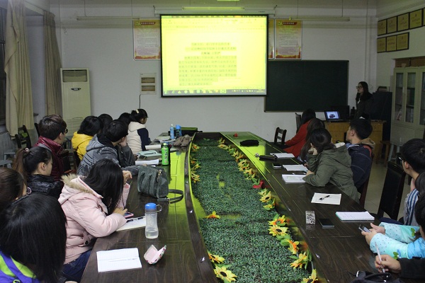 11月18日晚7:30,校报记者团新闻部部长王洪英和校报记者团副团长王姿俨在生物楼c205对动物科技学院学生会记者团成员进行了新闻培训。