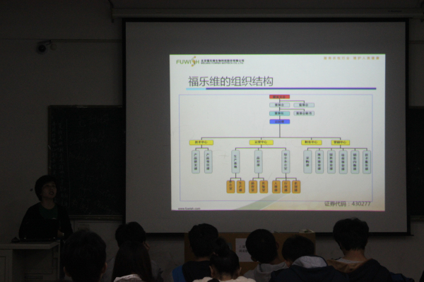 宣讲会伊始,薛华伟通过幻灯片为在座学生展示了福乐维公司的风采。首先,薛经理介绍了福乐维公司的发展简史以及企业文化,充分调动了同学们的积极性,增强了同学们对福乐维公司的兴趣。随后,她重点介绍了福乐维公司的行为准则,其中最核心的就是“做产品=做良心”,以《弟子规》为例,立德、立言、立身、立功为训,共享学习资源,共同进步。公司还提出“以人才为本,量才适位”的理念。宣讲会阶段气氛活跃,14级同学大多第一次接触同盟班,对福乐维公司产生了极大的兴趣,纷纷向薛经理表示了自己对福乐维同盟班的兴趣,并提出了一些关于同盟班的问题,薛经理也耐心解答了大家的问题。