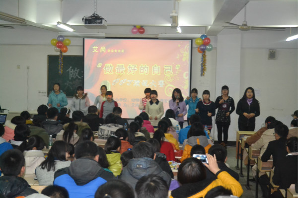 11月29日18点40分,动物科技学院学生会心里发展部组织举办了“做最好的自己”PPT演说大赛。本次比赛到场的评委有学生会主席林佳生,副主席张文天,心理发展部部长刘迦慧,嘉宾有副主席宋慧东,常委副秘书长王楠楠、纪亚楠,社团部部长刘超,宣传部部长于晓艳,女工部部长于萌,文艺部部长高嘉骏。