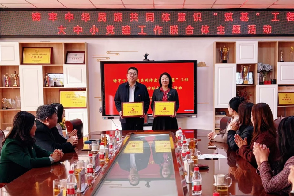 在授牌共建环节,李鹏与国城小学党支部书记郝玉芹共同为“大中小党建工作联合体共建单位”揭牌。与会代表围绕“深化党建共建、推进中华民族共同体意识教育一体化”展开深入交流,在组织共建、队伍共育、资源共享、活动共办等方面达成共识,并签署合作协议,为联合体常态化运行提供制度保障。