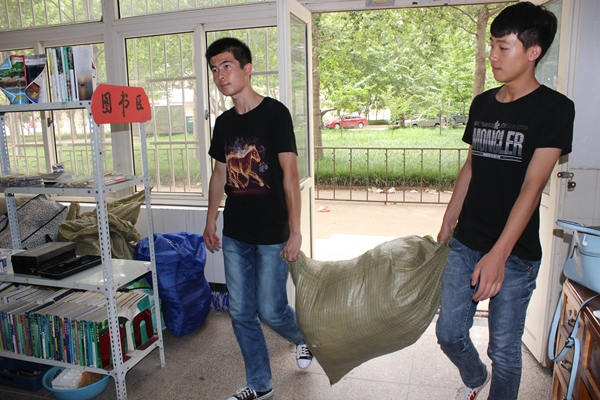 毕业生同学捐赠物品后与工作人员合影留念