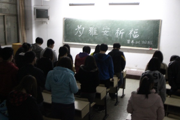 4月21日,动科学院动物营养专业1101班在教学区A区召开了名为“为雅安祈福”的主题班会,全体同学参与了班会。班会由班长和团支书主持召开。