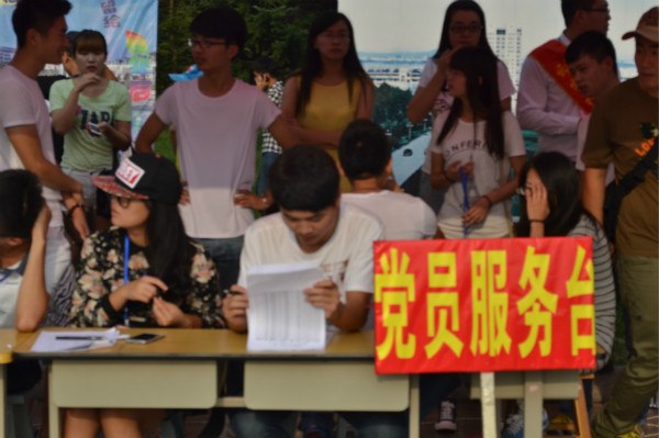 迎新中各个党支部选派专人,参与到“党员服务台”中,本着“新生为本,热情饱满,周到有序”的原则,积极配合学院开展迎新工作。迎新当日,党员志愿者们分布在迎新现场的各个角落,热情回答家长及新生提出的问题,帮助他们熟悉学校环境、报到流程和学校相关政策措施,对个别新生及家长遇到的紧急事件或困难及时进行处理,营造一种“党员在身边,有困难找党员”的良好氛围,整个迎新工作井然有序,使新生和家长感受到学生党员的优良素质与奉献精神。