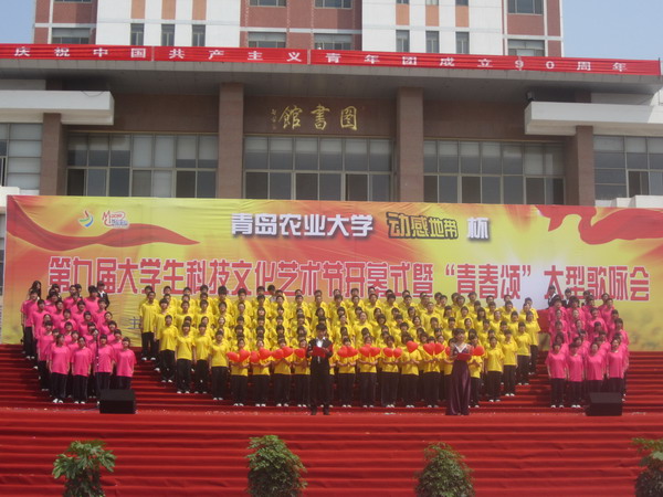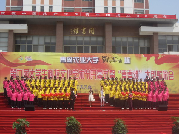 在庆祝中国共青团成立90周年暨五四青年节的特殊日子里,青岛农业大学第九届大学生科技文化艺术节于5月6日盛大开幕。动物科技学院积极组织同学参加本届艺术节开幕式暨“青春颂”大型歌咏会。