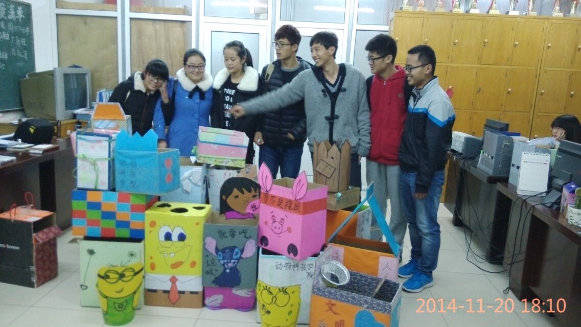 为了响应贯彻社会核心主义价值观,弘扬优良学风,不断推进我院学风建设的通知,动物科技学院勤工助学部成员号召同学们开展了第三届环保垃圾桶创意比赛的活动,为同学们营造良好的校园文化与学习环境,并且让大学生能参与到环保校园公益活动中来,增强社会责任感,实现社会价值。