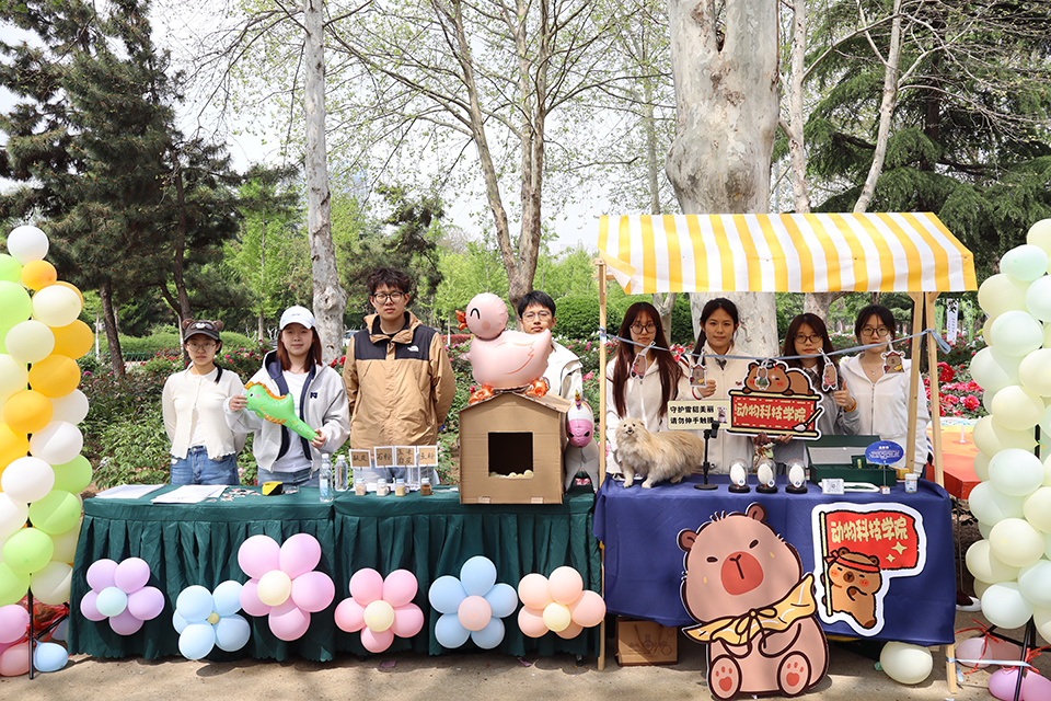 4月17日,青岛农业大学第十四届“虹韵牡丹”游园会在鼎盛花园隆重举行。动物科技学院立足学科特色,将严谨的畜牧知识转化为妙趣横生的互动体验,成为游园会上一张独具匠心的文化名片。