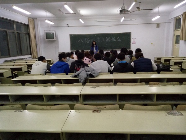 2016年3月27日晚,为响应学校号召,加强大学生的文明意识,建设和谐校园,动物科技学院学生会纪检部组织15级同学在教学区开展“八个倡导,四个禁止”主题班会活动。此次活动由动物科技学院学生会纪检部组织,15级各班班长带领展开。