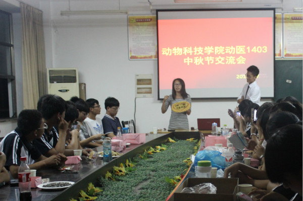 9月7日即农历8月14日晚7:30,动物科技学院分团委书记兼动医1403班班主任梁伟放弃了本该在假期内的休息时间与同学们在生物楼C205交流感情提前度中秋,班主任助理范威宏及1403班全体同学参加了此次交流会。