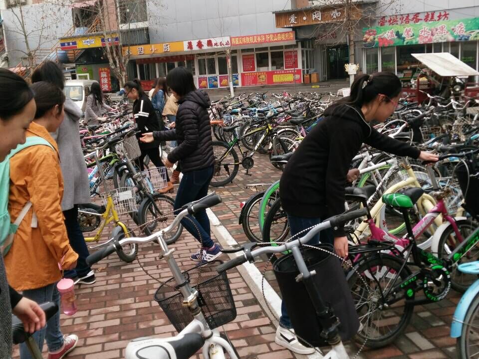 志愿者们分为两队,一队整理公寓门前自行车,一队打扫宿舍楼道卫生。整理自行车的同学们将自行车一一排好,并认真清理车区的卫生。楼道墙上有许多顽固的小广告,地上有难以清除的口香糖,窗户玻璃等死角也是难以下手,但同学们依旧在抹布、铲子和砂纸等工具的帮助下,成功完成了任务。