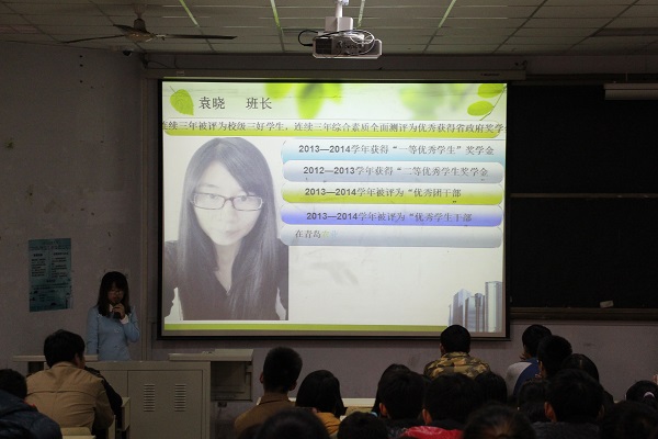 本次宣讲会中,为同学们做宣讲的主要有获得十佳大学生称号的王方正同学,以及荣获优秀学生标兵称号的宋慧东、窦成利、贾云慧、杨文彬、袁晓五位同学。来参加此次宣讲的各位学长学姐以一个”过来人“的身份,结合自己的发展经历,从自己擅长的方面为同学们传授自己的成长经历。其中,王方正同学在为大家传授自己学习英语的巧妙心得时还捎带着为大家讲解了出国留学的注意事项,宋慧东同学强调在大学四年学习生涯中最重要的是明确自己的奋斗目标,宣讲的各位同学或诙谐、或激情、或庄重的语言,引起了台下观看同学的一阵阵掌声和喝彩。