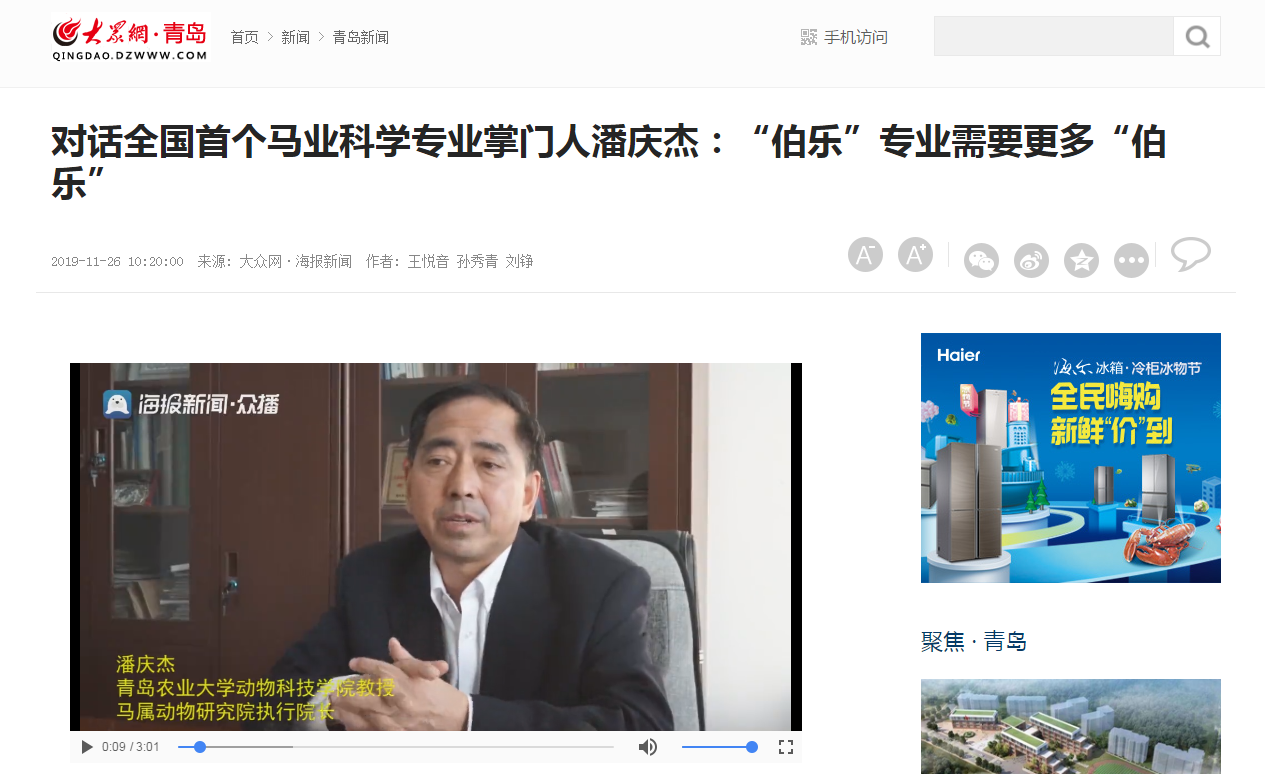 青岛农业大学的马业科学专业是2019年教育部批准的我国首个马产业领域的新专业,今年学校首次以马业科学专业招生,招了两个班共78人,这开辟了马业教育的先河。近日,大众网·海报新闻记者专访了青岛市农业大学动物科技学院教授、马属动物研究院执行院长潘庆杰,他认为,马专业作为朝阳产业,更需要更多的学校和社会一起努力,培养更多“伯乐”。