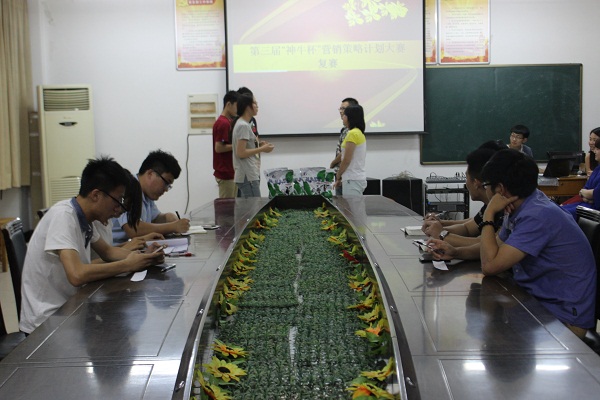 为了为我院学生提供展示一个企业营销能力、管理才华的平台,提高当代大学生的知识运用和实际的营销能力,加强学生营销思想的交流,强化“以能力和职业发展为导向” 的人才培养要求,以赛促学,引导和培养学生的营销策划和应变能力,同时增强学生团队协作精神、提高职业素养和就业竞争力,6月4日19点30分,第三届“神牛杯”营销策略计划大赛复赛于c212举办,纪检部干事万嗣同、