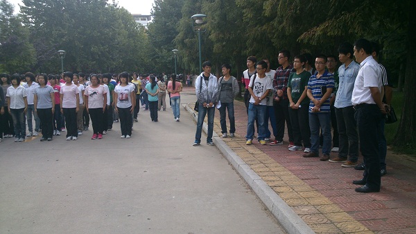 在视察中白书记仔细的观察了新生军训的过程,并对训练中存在的问题与教官进行了交流。当白书记看到军训过程中有些同学跟不上军训口号时,白书记耐心的劝告大家要把自己想象成一个真正的军人,时刻严格要求自己,认真对待军训,在军训过程中要有所收获、有所启迪,将自己大学生涯的第一项任务顺利完成,才能提高自己的自信心,才能更好的完成以后的学习和生活等各项任务。