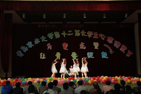 开幕致词结束后,经济与管理学院带来青春洋溢的开场舞,将现场气氛带入高潮;随后生命科学学院表演了一场舞台剧——《坚持的力量》,讲述了一个内向的姑娘经过磨练蜕化成职场丽人,用真实的故事打动人心。动物科技学院艺术团热情演唱的励志歌曲《倔强》,告诉我们青春需要梦想,梦想需要坚持。节目时时刻刻传递着感动,最后心语无声志愿者协会的手语表演《感恩有你》用双手一点点传递着父母恩、师生情。