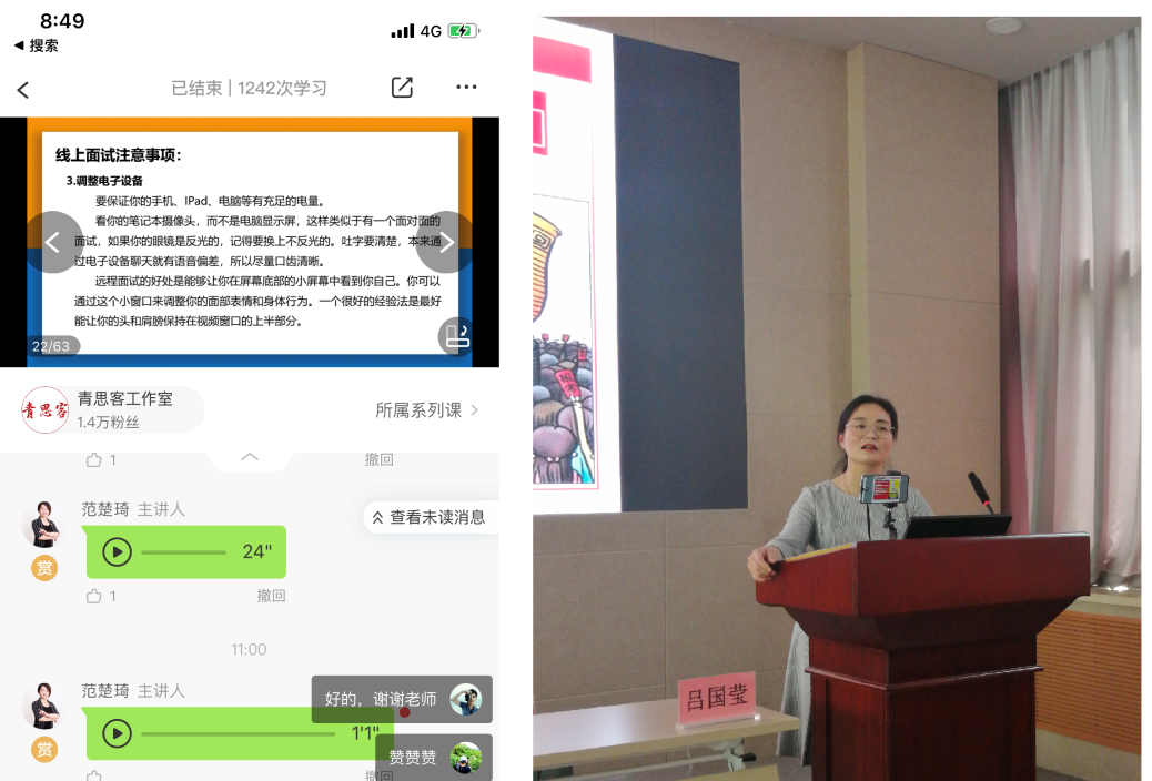 学院精心组织策划的线上复试经验分享会上,研究生导师、学院副院长孙娟教授和学院2015级考取研究生的优秀毕业生,分别从面试考官和复试学生等不同的角度向毕业生介绍经验,鼓舞士气。