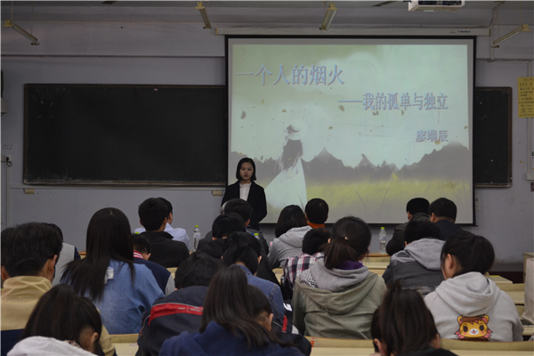 第三名选手:廖端辰以“一个人的烟火_我的孤单与独立”为主题进行演讲