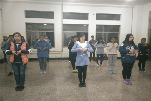 手语队自开学就开始训练,坚持每天晚上排练一个小时,在训练过程中,队员们都积极参与,认真训练。每当音乐响起,大家面带微笑,目视前方,用最饱满的精神状态诉说青春与爱。虽然每晚训练很辛苦,但大家仍坚持着,始终用标准优美的动作完成每一次次训练,他们用心表演,让爱在指尖流淌。经过一次次的训练,大家越来越默契,越来越整齐,大家的心也越来越近。通过了解,手语队的成员们都十分热爱手语,所以每晚训练的辛苦未能磨灭他们的热情,他们希望通过全体的努力,在即将到来的手语比赛中取得冠军。