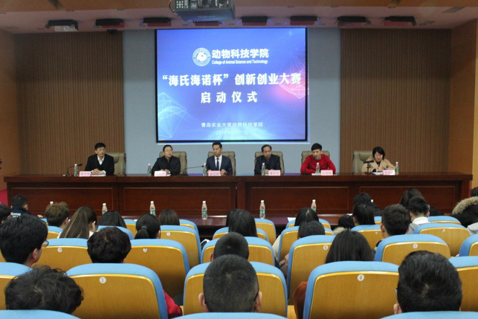 3月1日,青岛农业大学动物科技学院于学术会馆举行“海氏海诺杯”创新创业大赛启动仪式。青岛海氏海诺集团有限公司董事长麻兆晖,中国世贸组织研究会直销研究业委员副秘书长孙海峰,马属动物研究院执行院长潘庆杰,校团委副书记、创新创业学院副院长王光炬,学院党总支副书记、副院长展学斌,莱河大自然农场祝明辉经理出席会议,会议由学院团委书记范楚琦主持,动科学院各班级学生代表参加会议。