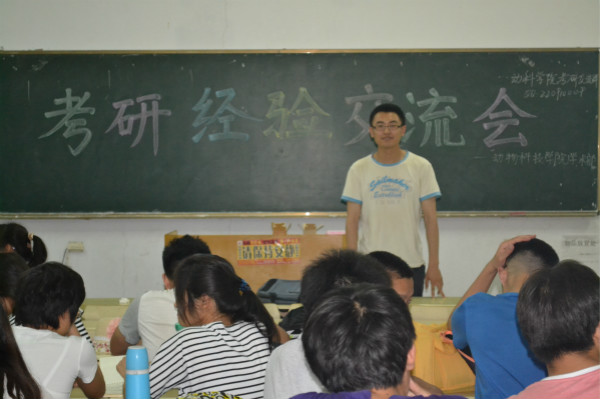 5月29日晚,为了加强考研交流,提高学院考研率,动物科技学院学术部在教学区举办了考研经验交流会。此次交流会打破了传统的混合交流模式,采取针对性交流的方案,根据考研方向和个人意向,分为两个场区:一场区——南京农业和东北农业大学专场;二场区——农科院、华中农业大学以及吉林大学专场。