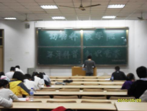 为提高同学们的海洋知识文化水平,增强大家对海洋的认知能力,5月28日晚,在教学楼D区303,动物科技学院08级,09级的接近170名同学参加了海洋科普知识竞赛的初赛。